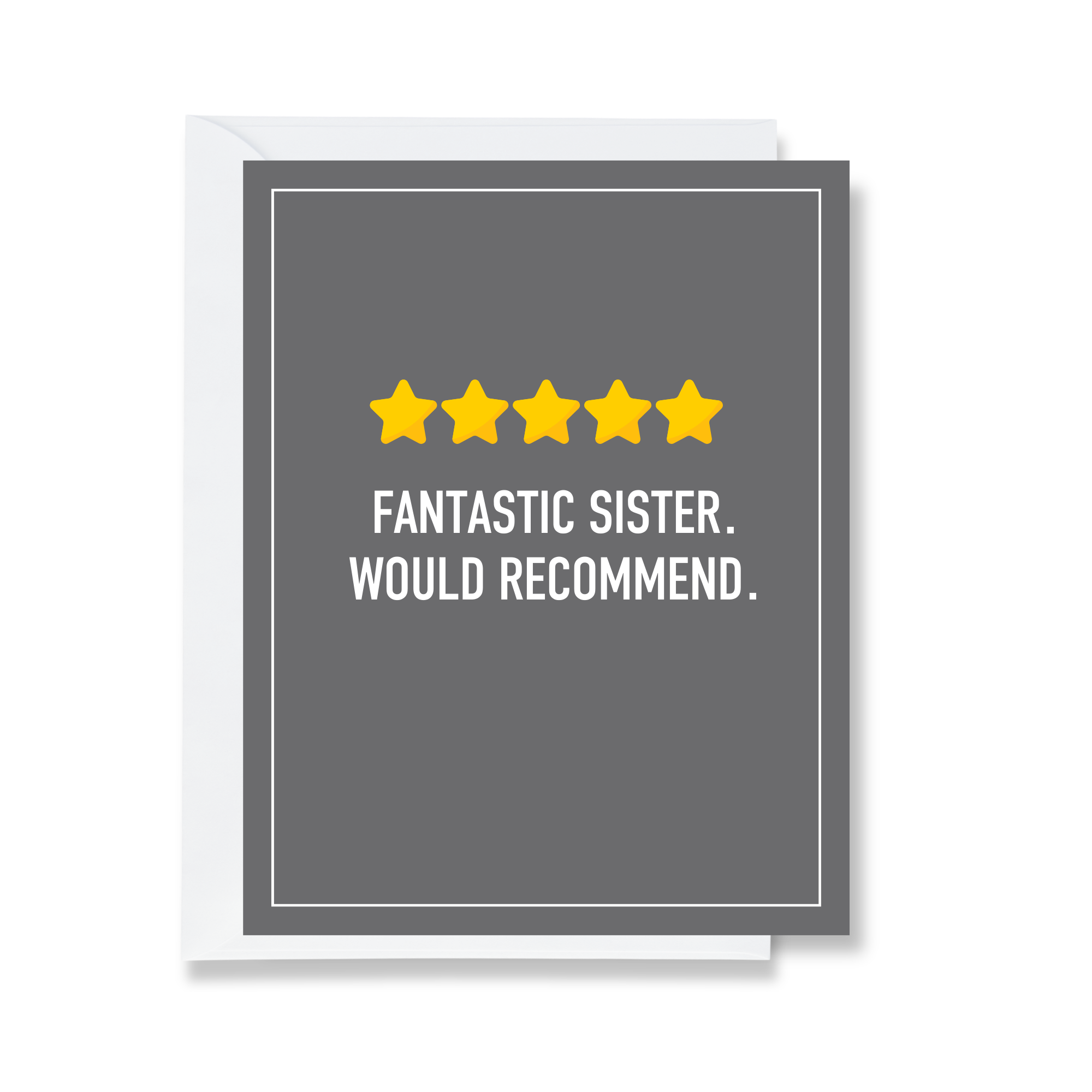 Card Text: 5 STARS - FANTASTIC SISTER. WOULD RECOMMEND.
