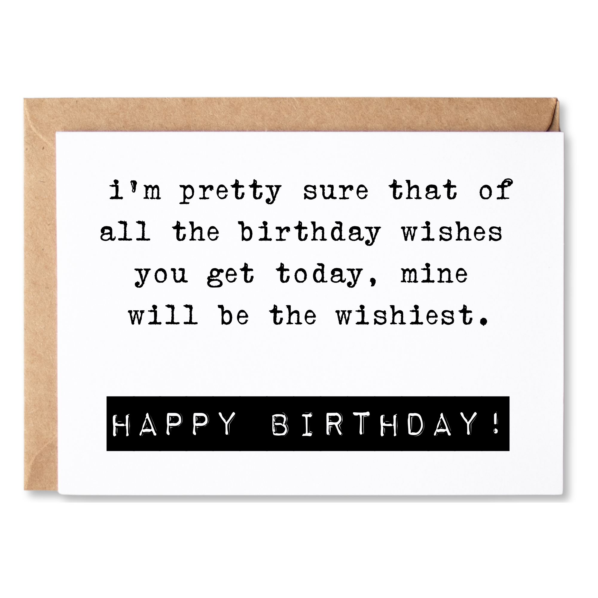 Card Text: i'm pretty sure that of all the birthday wishes you get today, mine will be the wishiest. HAPPY BIRTHDAY!