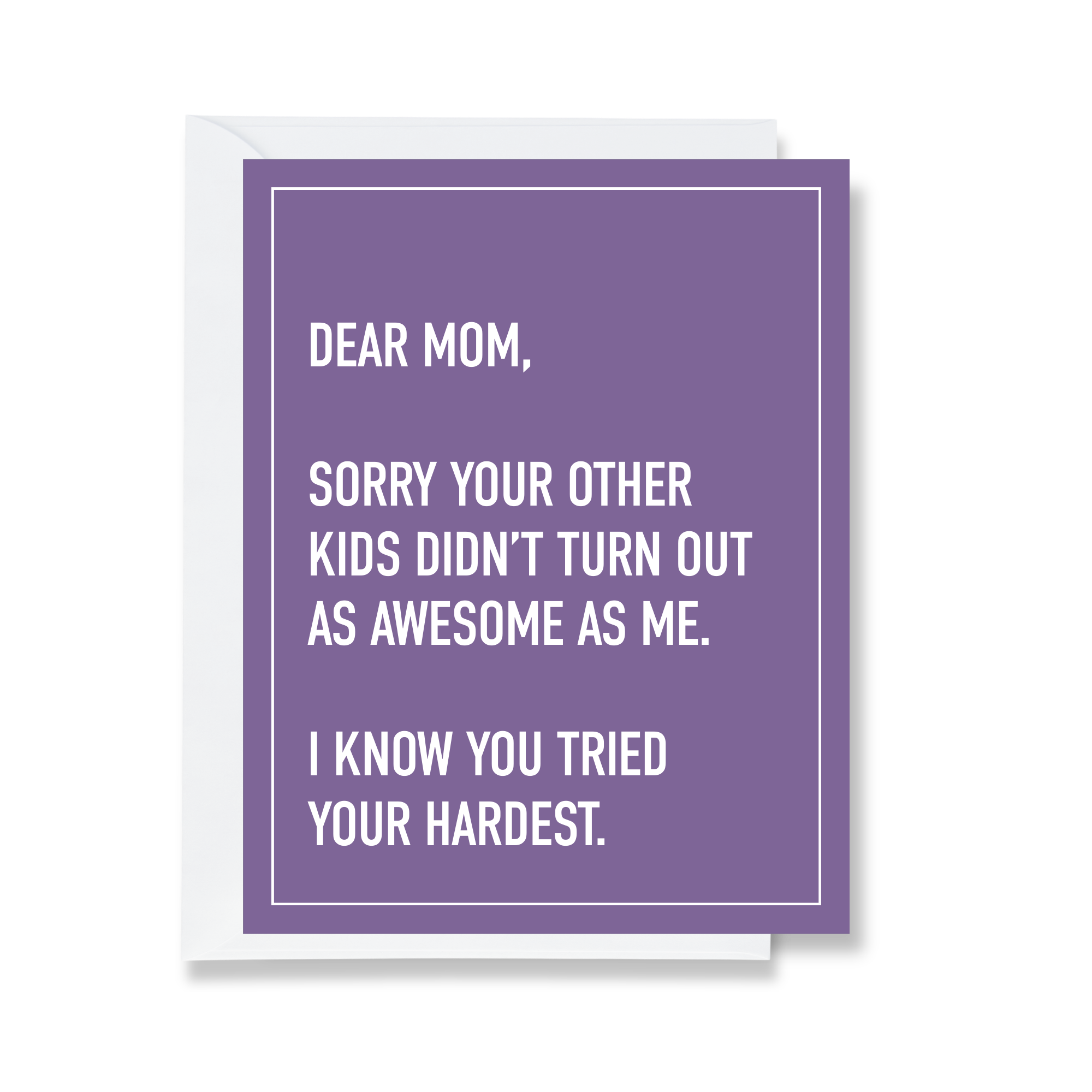 Card Text: DEAR MOM, SORRY YOUR OTHER KIDS DIDN'T TURN OUT AS AWESOME AS ME. I KNOW YOU TRIED YOUR HARDEST.
