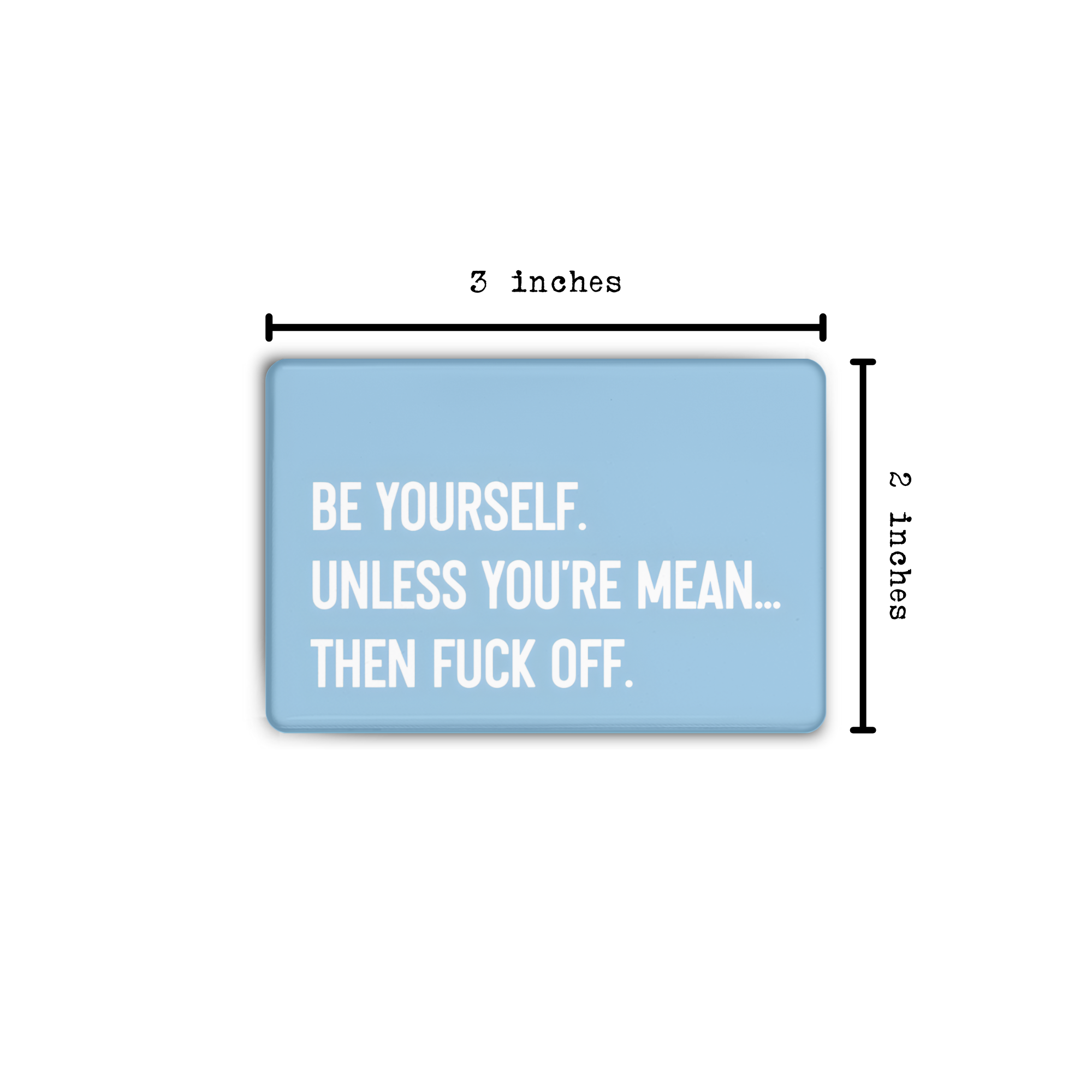 Magnet Text: BE YOURSELF. UNLESS YOU'RE MEAN... THEN FUCK OFF.