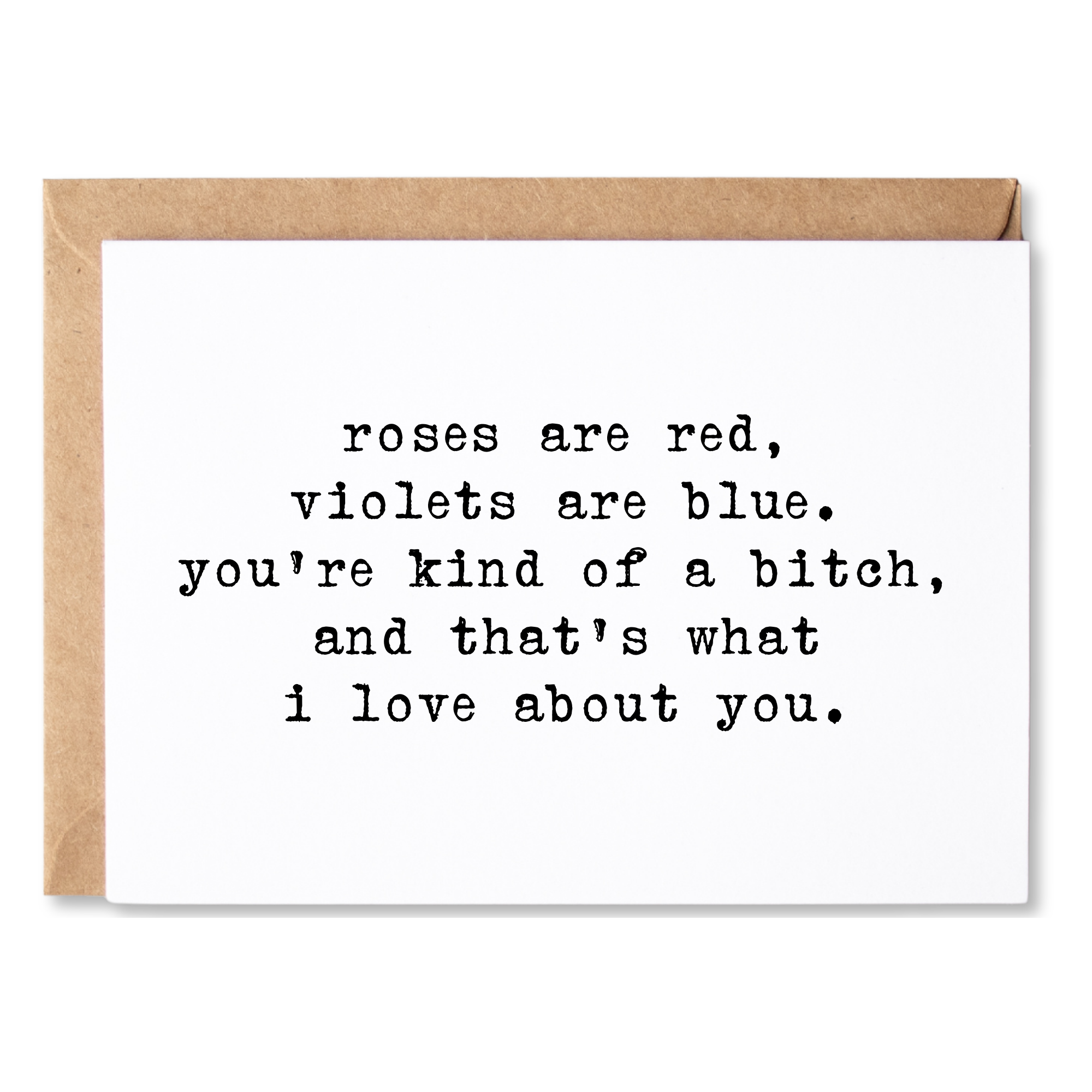 Card Text: roses are red, violets are blue. you're kind of a bitch, and that's what i love about you.