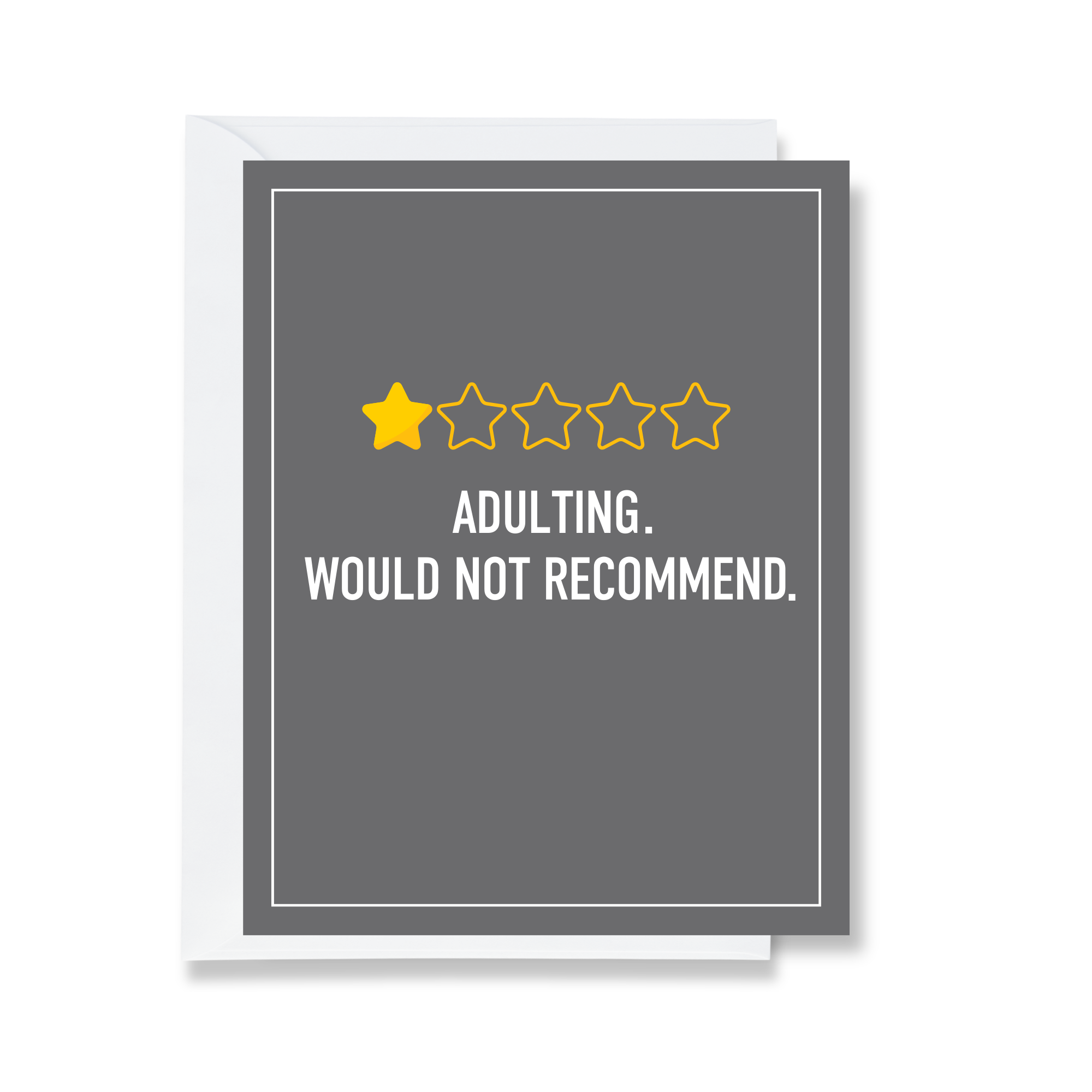 Card Text: 1 STAR - ADULTING. WOULD NOT RECOMMEND.
