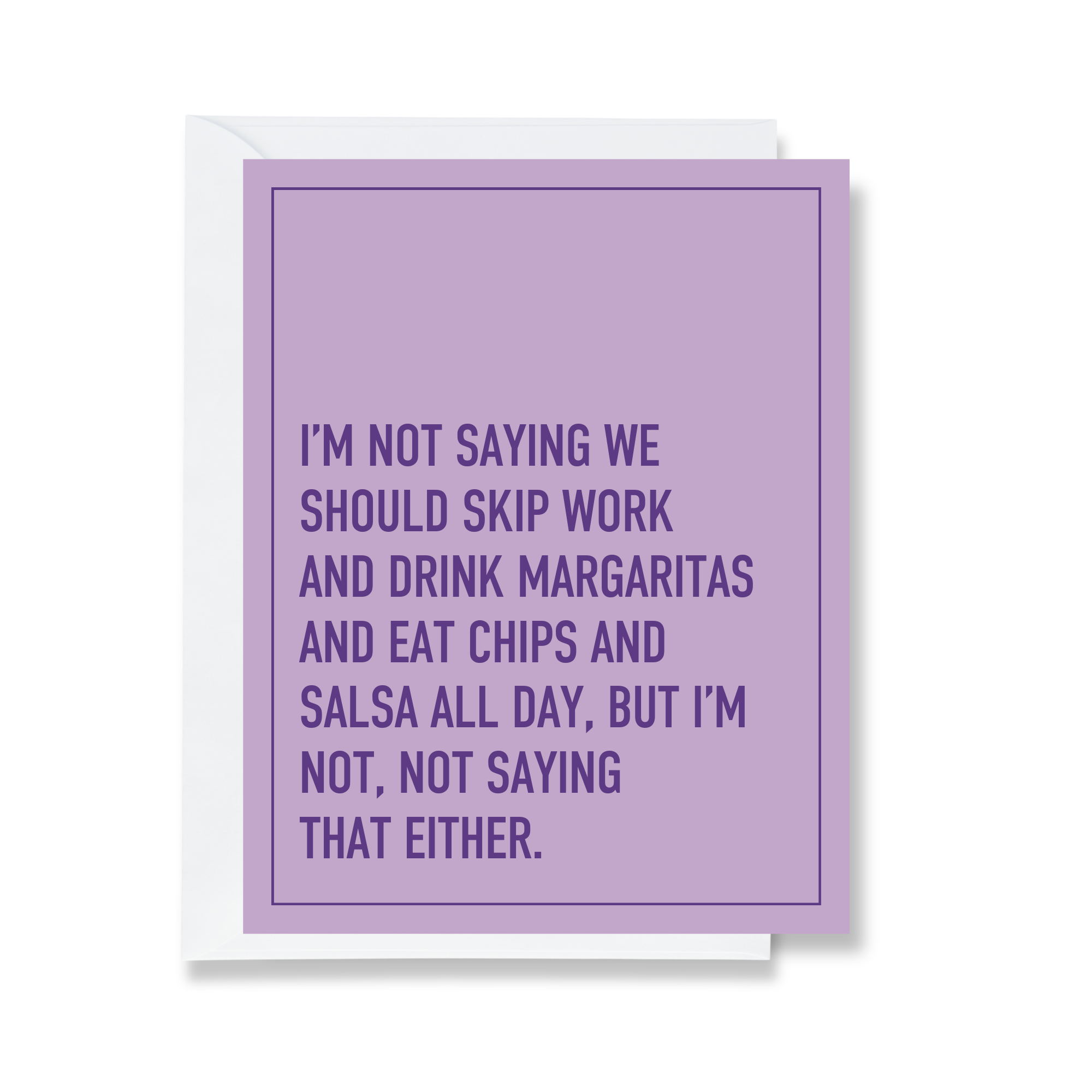 Card Text: I'M NOT SAYING WE SHOULD SKIP WORK AND DRINK MARGARITAS AND EAT CHIPS AND SALSA ALL DAY, BUT I'M NOT, NOT SAYING THAT EITHER.