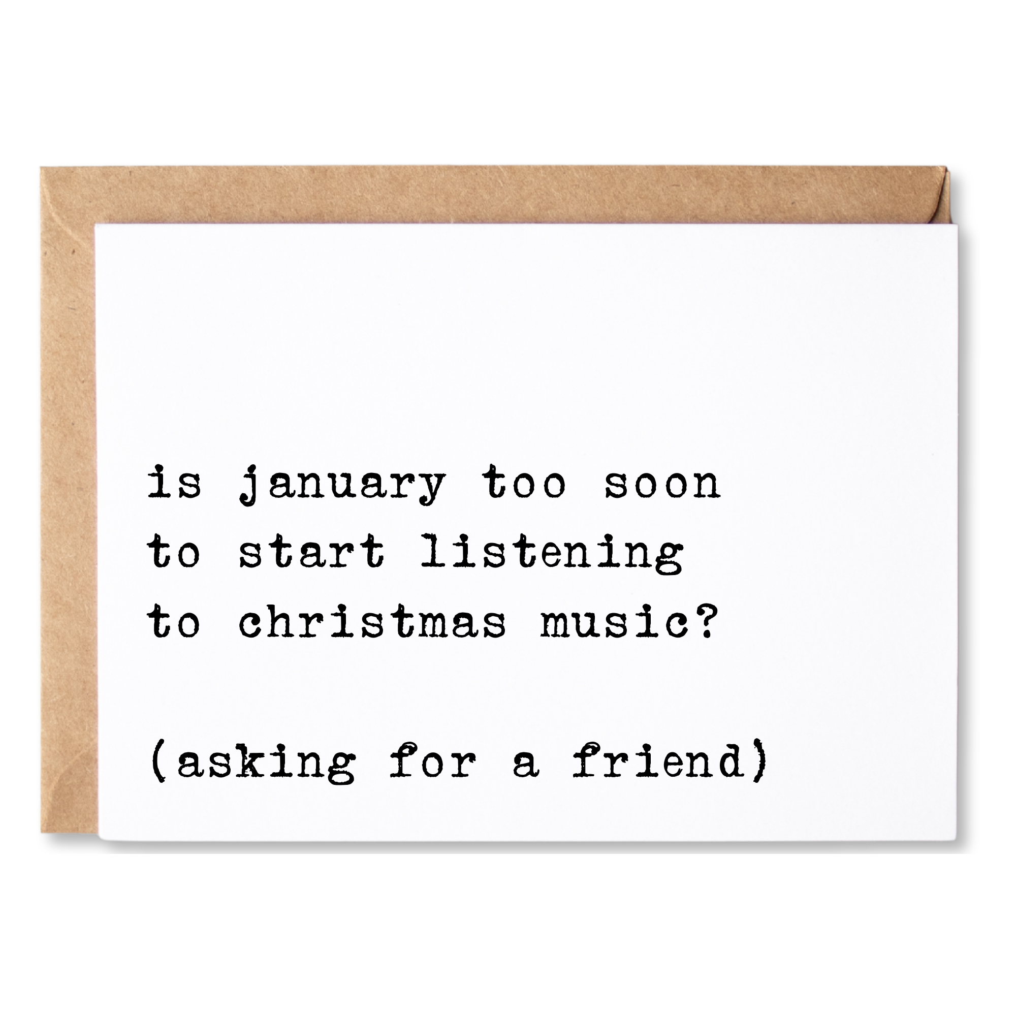 Card Text: is january too soon to start listening to christmas music? (asking for a friend)