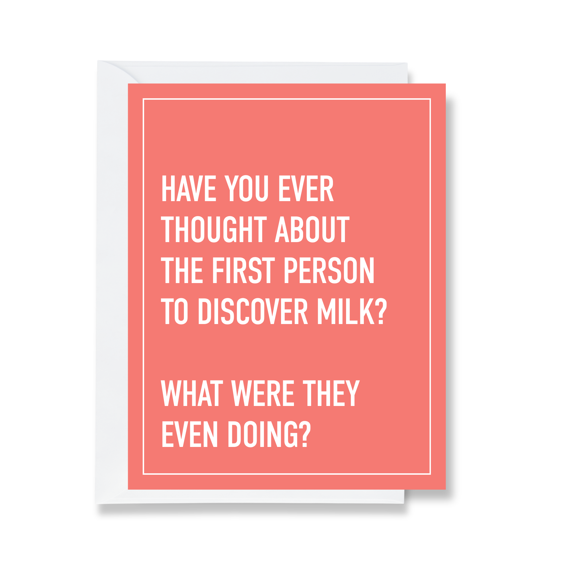 Card Text: HAVE YOU EVER THOUGHT ABOUT THE FIRST PERSON TO DISCOVER MILK? WHAT WERE THEY EVEN DOING?
